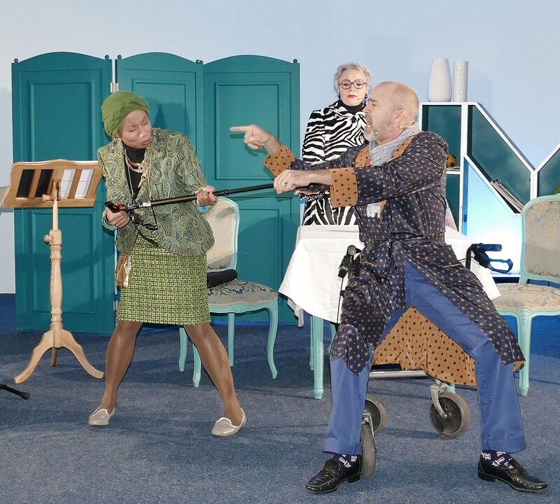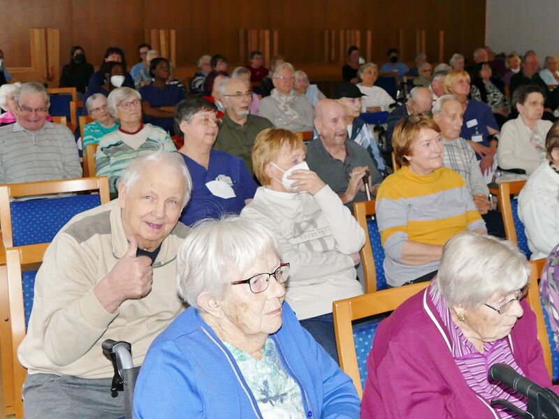 Tosenden Applaus ernteten die Künstler*innen des „Aalto Mobil“, dem Projekt für mobile Produktionen der Theater und Philharmonie Essen, jetzt im Kurt-Schumacher-Zentrum der AWO am Überruhrer Rüpingsweg. Normalerweise die große Bühne des Essener Opernhauses gewohnt, zauberten sie unter dem Titel „Musik der 1960er-Jahre“ ein sehr modernes und mitreißendes Programm auf die (kleine) Bühne des Zentrums. Die Rahmenhandlung spielte in einem Heim für pensionierte Künstler, die beim gemütlichen Nachmittagskaffee aus ihrem Leben erzählten. Aus ihren Geschichten ergaben sich dann immer wieder Anknüpfungspunkte für musikalische Darbietungen von populären Musikstücken der 1960er-Jahre. Und wenn dabei zum Beispiel „Beatles Klassiker“ oder Lieder aus dem Musical „Hair“ erklangen, ging das Publikum begeistert mit und verabschiedete euphorisch das Ensemble mitsamt den mitgebrachten Bühnentechniker*innen und Maskenbildnerinnen: eine höchst gelungene Mischung aus Kunst und Gedächtnistraining.