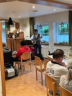 Rund 40 Mieter*innen des Lotte-Lemke-Hauses freuten sich über eine leckere Linsensuppe aus der AWO Herzensküche. Ermöglicht wurde das Herz und Magen wärmende Weihnachtsessen durch die spendenbasierte Aktion „Warmes Herz“, durch die bedürftige Senior*innen in den Wintermonaten täglich eine warme Mahlzeit bekommen können. Mit selbstgebackenem Kuchen, mitgebrachtem Kaffee und Weihnachtsliedern mit Gitarrenbegleitung wurde es eine schöne und stimmungsvolle Weihnachtsfeier.