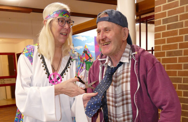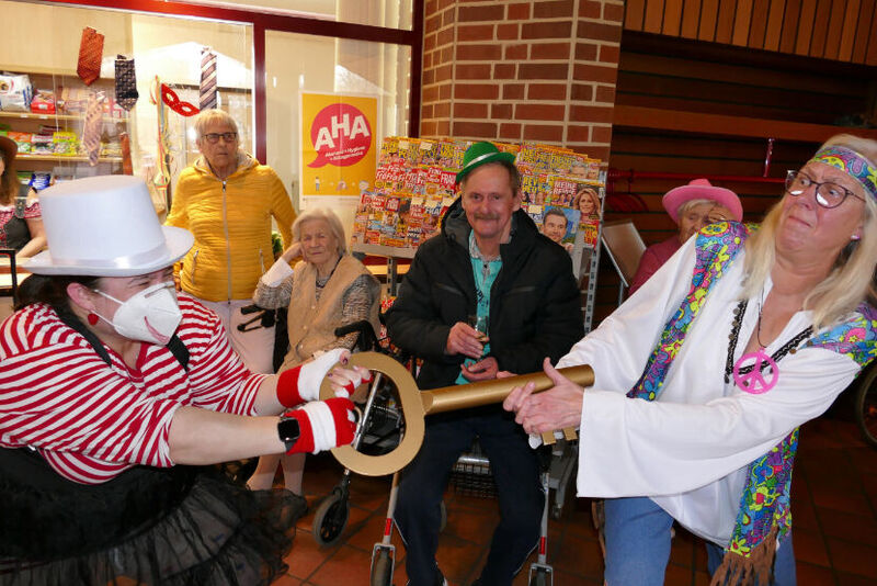 Das Foyer des Friedrich-Ebert-Zentrums wurde zur Karnevalshochburg und das „Trömmelsche“ schallte bis unter die Decke, nachdem die KG Narrenschiff symbolisch den Schlüssel des Seniorenheims in Altenessen an sich genommen hatte. Stilecht schnitt die Einrichtungsleiterin Dorothea Kollender den Herren im Haus die Krawatten ab und gemeinsam feierten Angestellte und Bewohner*innen die Beginn der ‚tollen Tage‘. Helau an alle AWO-Jecken!