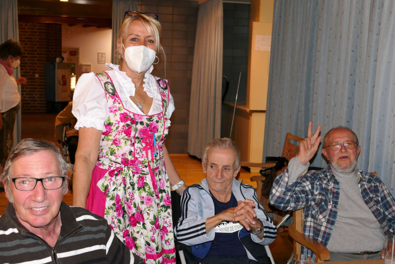 Zünftig und unter Einhaltung der aktuellen Hygienebestimmungen feierten die Bewohner*innen des Friedrich-Ebert-Zentrums vergangene Woche ihr Oktoberfest. Da hieß es wieder "O‘zapft is" und der Saal wurde zur Festwiese. Die Mitarbeiter*innen trugen Tracht und es wurde getanzt, geschunkelt und angestoßen. Dazu spielte Haus- und Hofmusiker Dennis Bongardtz auf. Er ist mittlerweile so beliebt , dass sogar Autogrammkarten verteilte. Auch die Küche gab mal wieder ihr Bestes und so wurde schon zum Mittagessen "Haxe und Kraut" gereicht, um sich auf die Festzeltstimmung am Nachmittag einstimmen zu können. Zum Fest gab es kühles Bier, lieblichen Wein, Spezi oder Radler und zum Ausklang einen "halben Hahn". Was die Münchner können, kann das Essener „Friedrich“ auch.